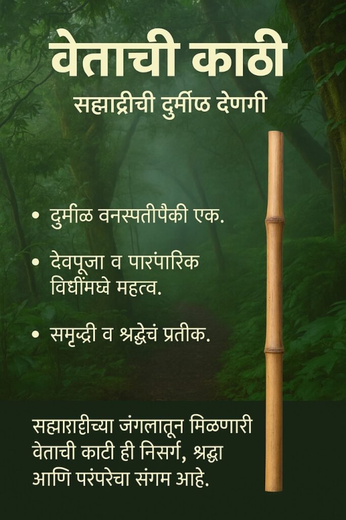 सह्याद्रीच्या घनदाट जंगलात उगवणाऱ्या अनेक दुर्मिळ वनस्पतींपैकी वेताचं झाड हे खास महत्वाचं मानलं जातं. या झाडांपासून मिळणारी वेताची काठी केवळ निसर्गाची देणगी नसून, ती धार्मिक आणि सांस्कृतिक परंपरांचा अविभाज्य भाग आहे.